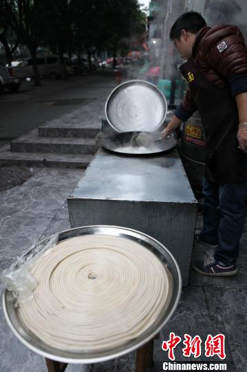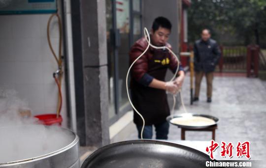 重庆小面上演绝活真功夫 一碗只有一根面