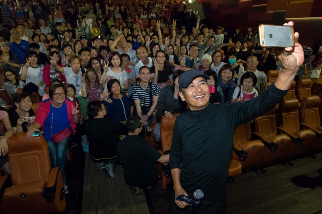 《寒战2》周润发突袭影院 与粉丝自拍不停