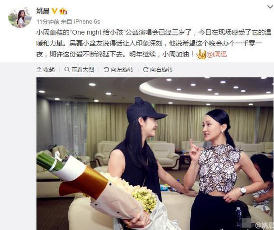 破不和传言!姚晨助阵周迅公益晚会晒合照